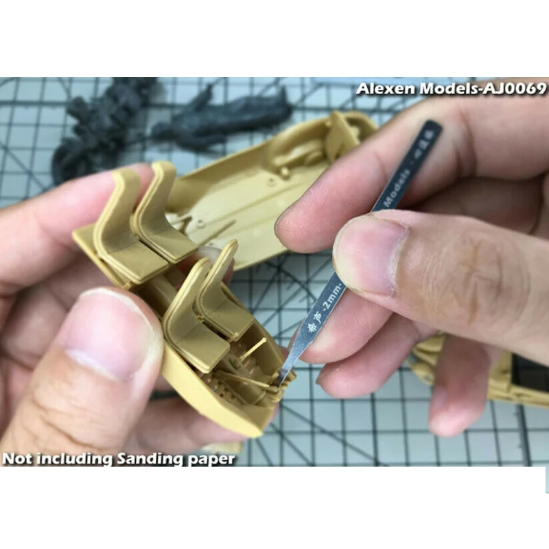 The description was a little vage and the product looked larger in the picture, this is for fine detail work and sand paper is bought separately, would’ve been better if sandpaper was sold with product