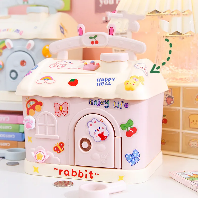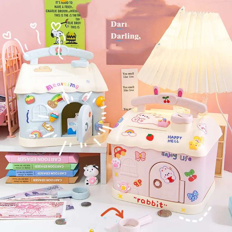 Unique Creative DIY Large House Piggy Bank PVC Unbreakable Money Saving Pot Coin Banks Coin Box With Key Gift Toy For Kids