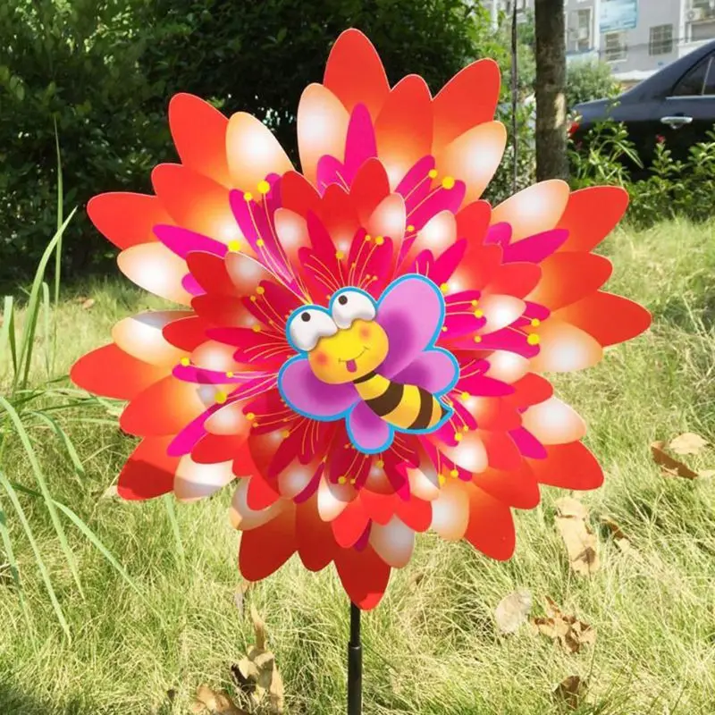 Wind Wind Spinner Three Layers Sunflower Outdoor Garden Decoration Windmill Pinwheel Kids Children Toys Cartoon Gifts Funny