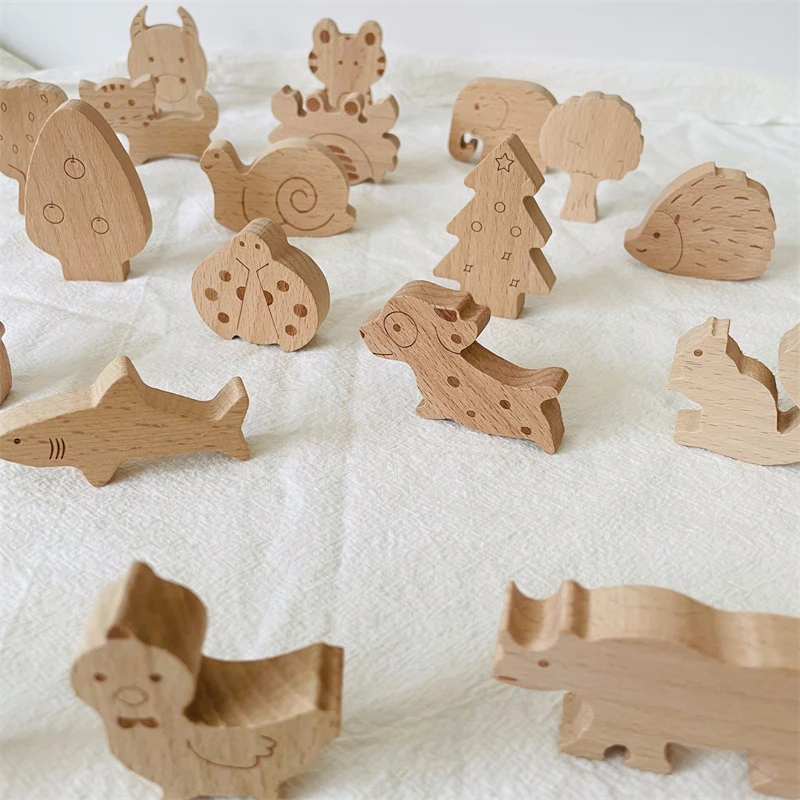 Wood Animal Figures Toys Handicraft Mini Animals Learning Toys Nordic Wooden Blocks Openend Play Educational Toys for Children