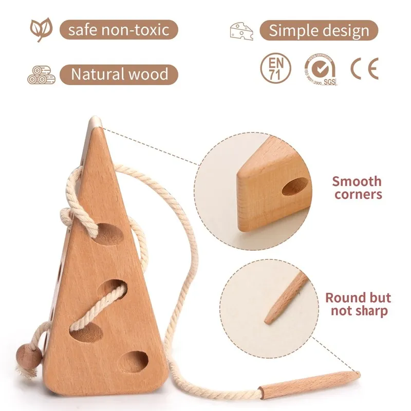Wooden Cheese Stringing Toy for Children DIY Threading Board Lacing Beech Wooden Monterssori Toys Kids Wood Game Set Baby Gifts