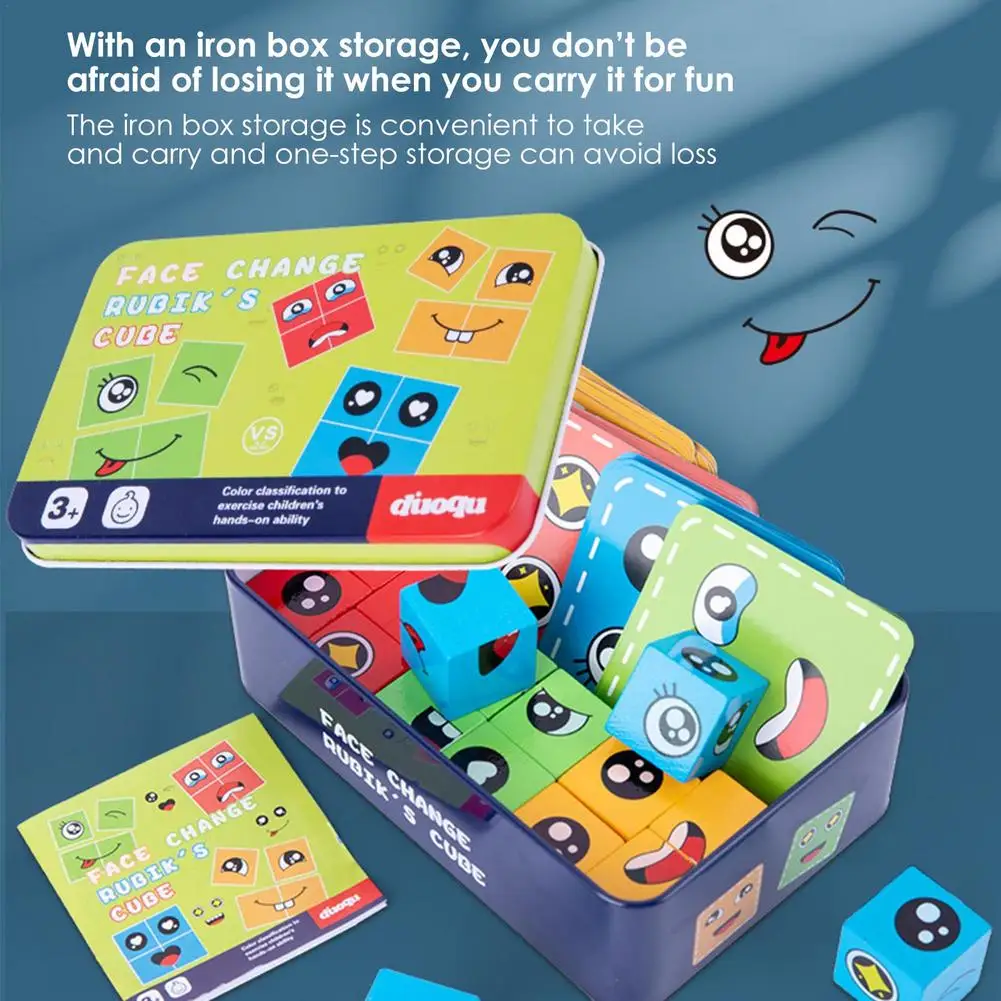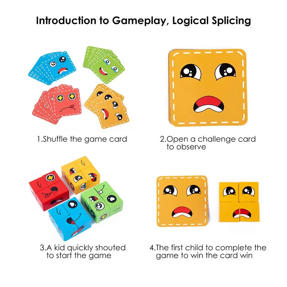 Wooden Cube Building Puzzle Table Games Educational Toys Montessori Interactive Game Matching Block Puzzles Kids Christmas Gift