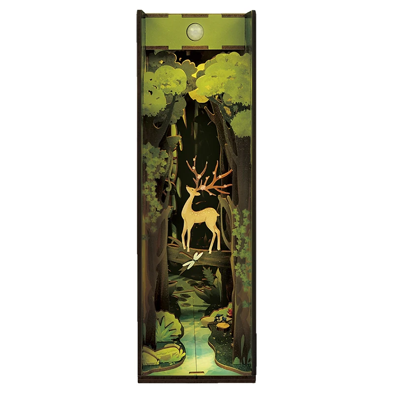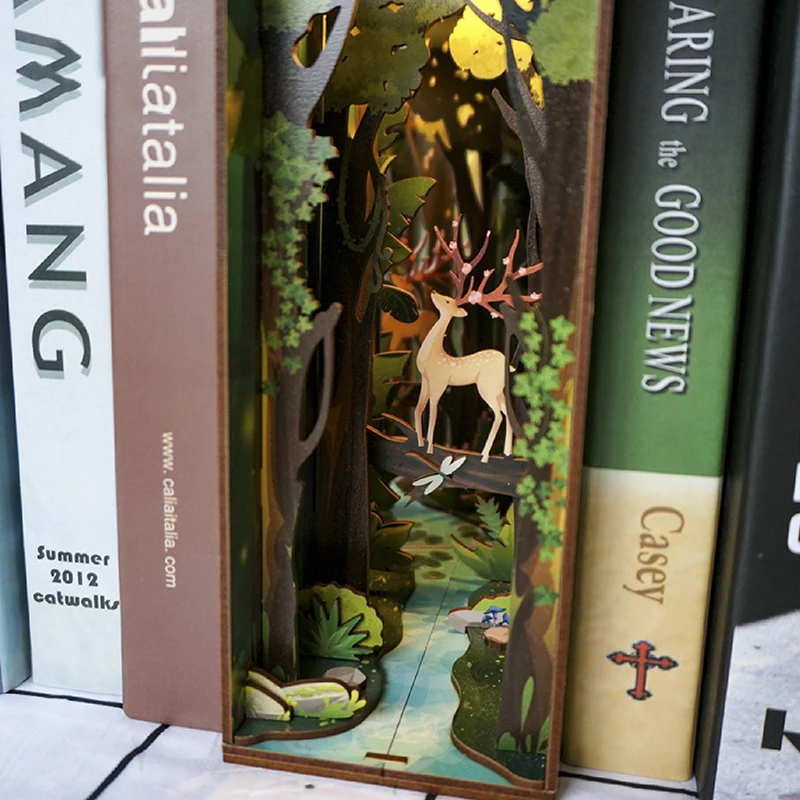 Wooden DIY Book Nook Shelf Insert Kits Model Forest Tree Animal Roombox Handmade Building Miniature Furniture Bookend Toys Gifts