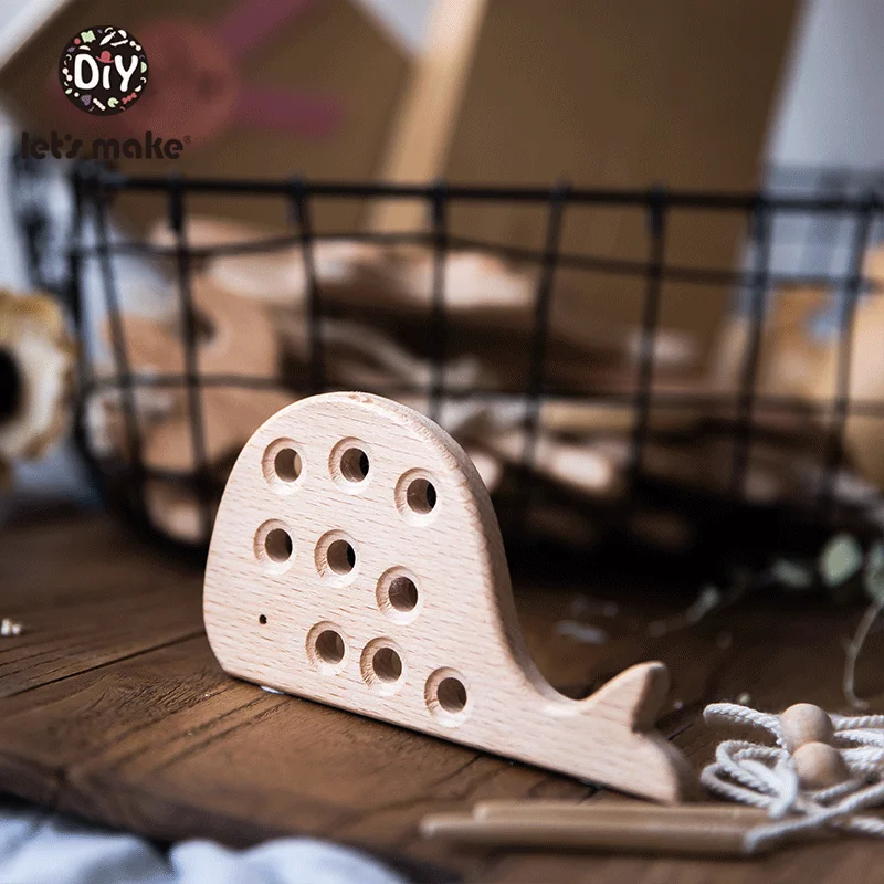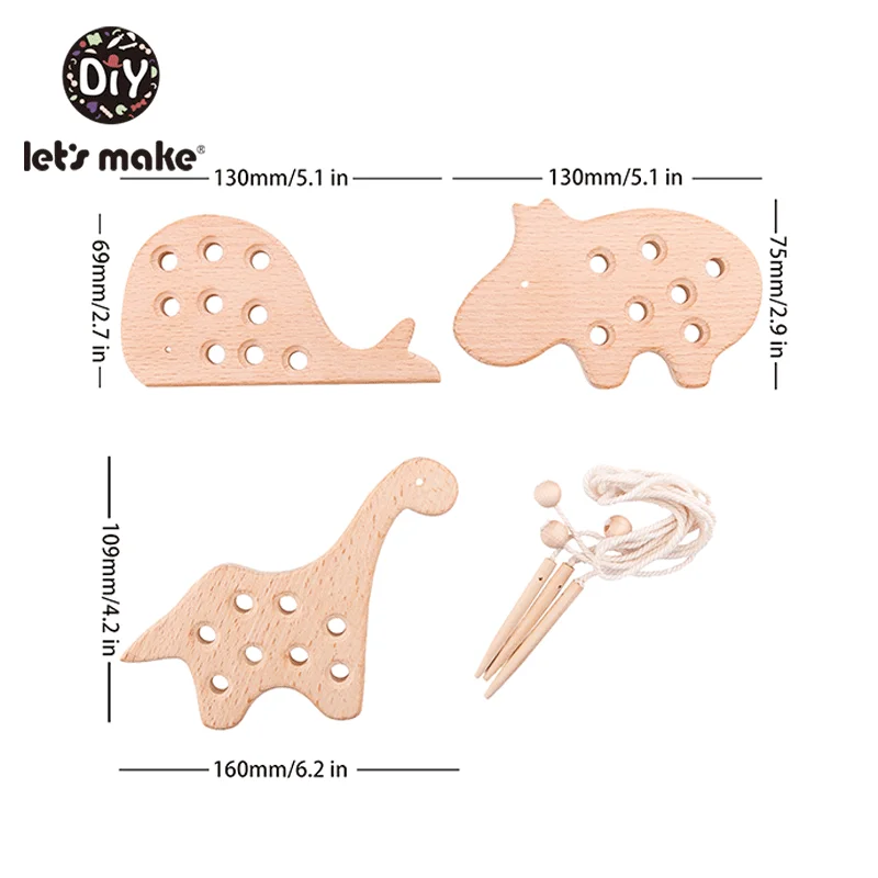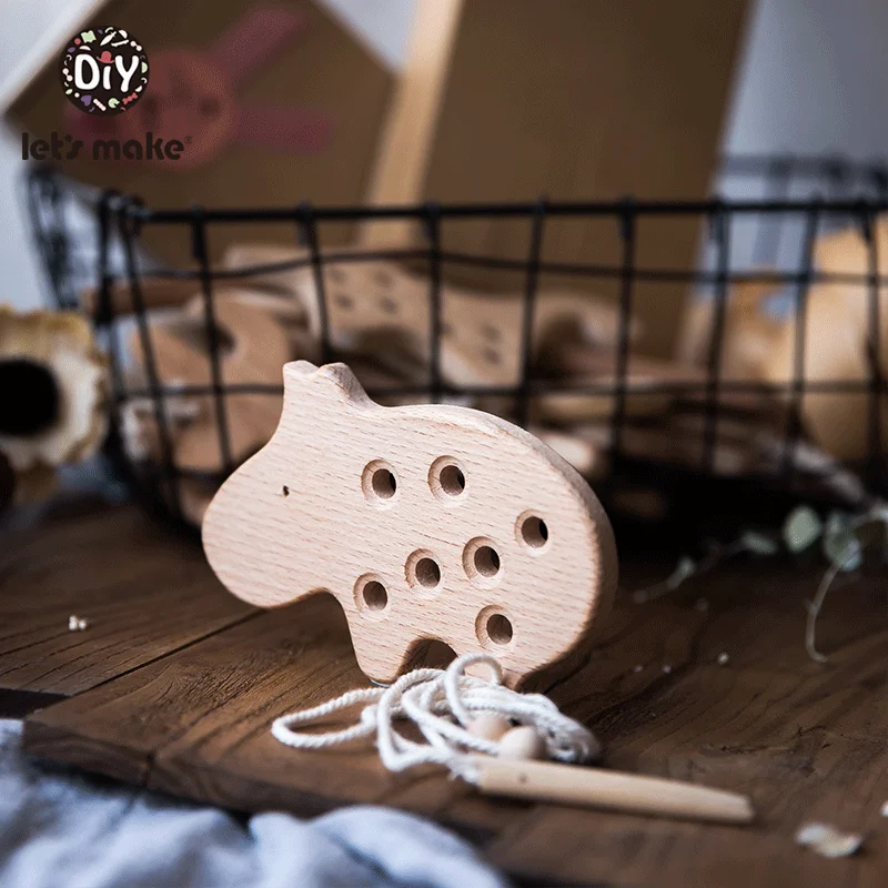 Wooden Kindergarten Mouse Threading Board Lacing Beech Wooden Sewing Toys Dinosaur Button Beaded Blocks For Boys Girls Products