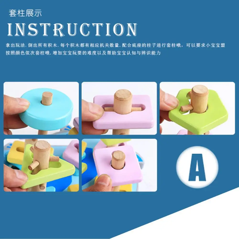 Wooden Puzzles Building Block Montessori Toys Wood Educational Geometric Shapes Recognition Stack Sort Education Puzzle Toy