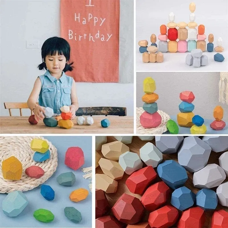 Wooden Rainbow Stones Building Blocks Colorful Wood Toy Block Stacker Balancing Games Montessori Educational Toys for Children
