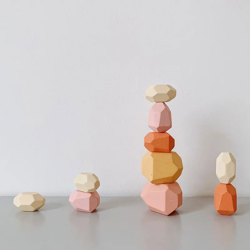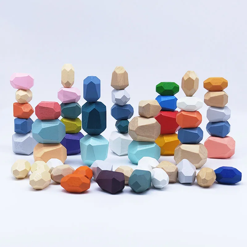 Wooden Rainbow Wood Balance Blocks Wooden Colored Stone Building Block Educational Toys Creative Montessori Toys for Kids