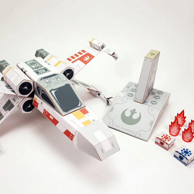 X-WING Fighter Red Paper Model Mini 3D Cube Figure Papercraft DIY Kids Adult Origami Art Handmade Craft Toys FC-014